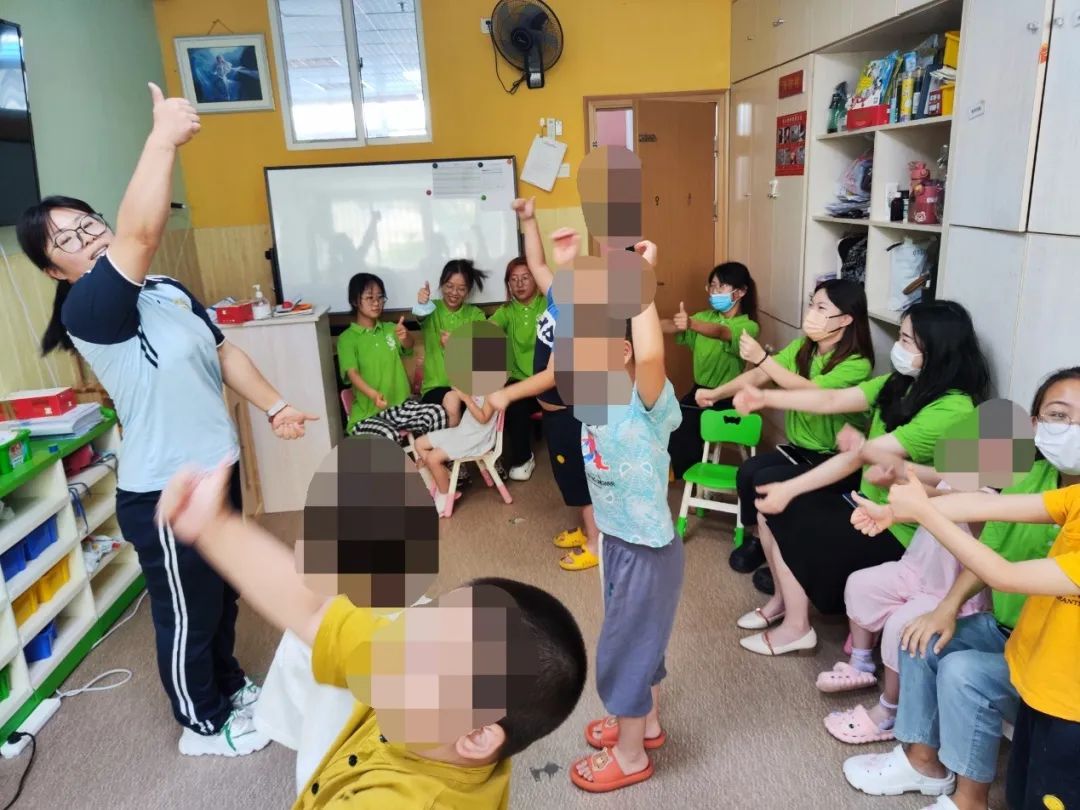 团队队长日语212班孙皓楠说:“来到孤独症儿童身边,陪伴孩子们一同游戏玩耍,作为助教与孩子们一起上课、学习知识,虽然每一天都很忙碌,但我从孩子们的欢笑中感受到了志愿服务的价值,也真切地感受到了语言的温度、爱心的力量,这对我的专业学习是一种启示、促进和帮助。”