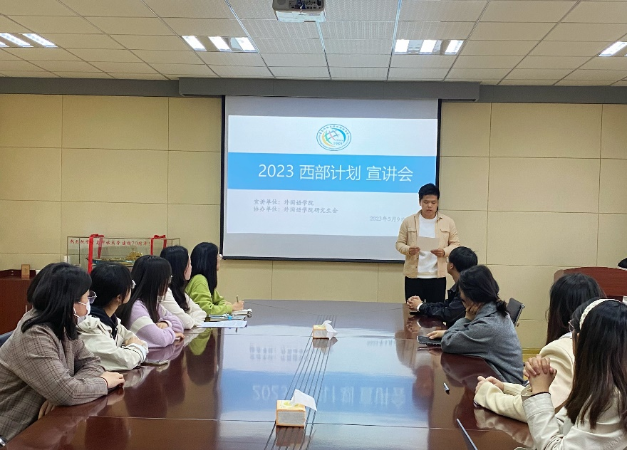 青年当有志,立志为四方。为贯彻落实党的二十大精神,鼓舞全体青年学生感恩回馈社会,增进同学们对国家西部计划的理解,解答大家的疑惑,beat365中文唯一官网团委于5月9日晚在beat365中文唯一官网楼517室举办“西部计划”主题宣讲会。本次宣讲会邀请2022届西部计划志愿者巴艳·多合特尔别克、beat365中文唯一官网第二十三届研究生支教团成员王启真主讲,beat365中文唯一官网研究生会王潼潼主持,学院部分本科生和研究生参加。