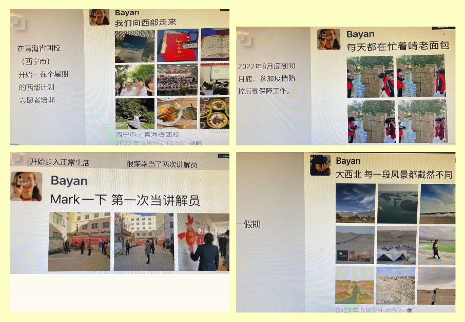 巴艳·多合特尔别克通过线上参会的形式,围绕志愿服务实施方案、志愿者日常管理办法以及经验交流等方面对西部计划进行了全面介绍和解读,使同学们有了更深入的了解。在参与西部计划的过程中,她不仅结识了一群纯真善良的孩子们,还重拾了自己热衷于志愿服务的初心,收获了宝贵的精神财富。她强调,西部计划带给大家的不仅仅是一份履历上的证明,更多的是深入西部基层生活后的成长和经历,希望大家珍惜此次机会,去感受祖国西部大地的心跳,去聆听人民的心跳,也许会惧怕西部那寒冷的风,但炽热的心将会温暖整个西部,为祖国发展贡献自己的力量。