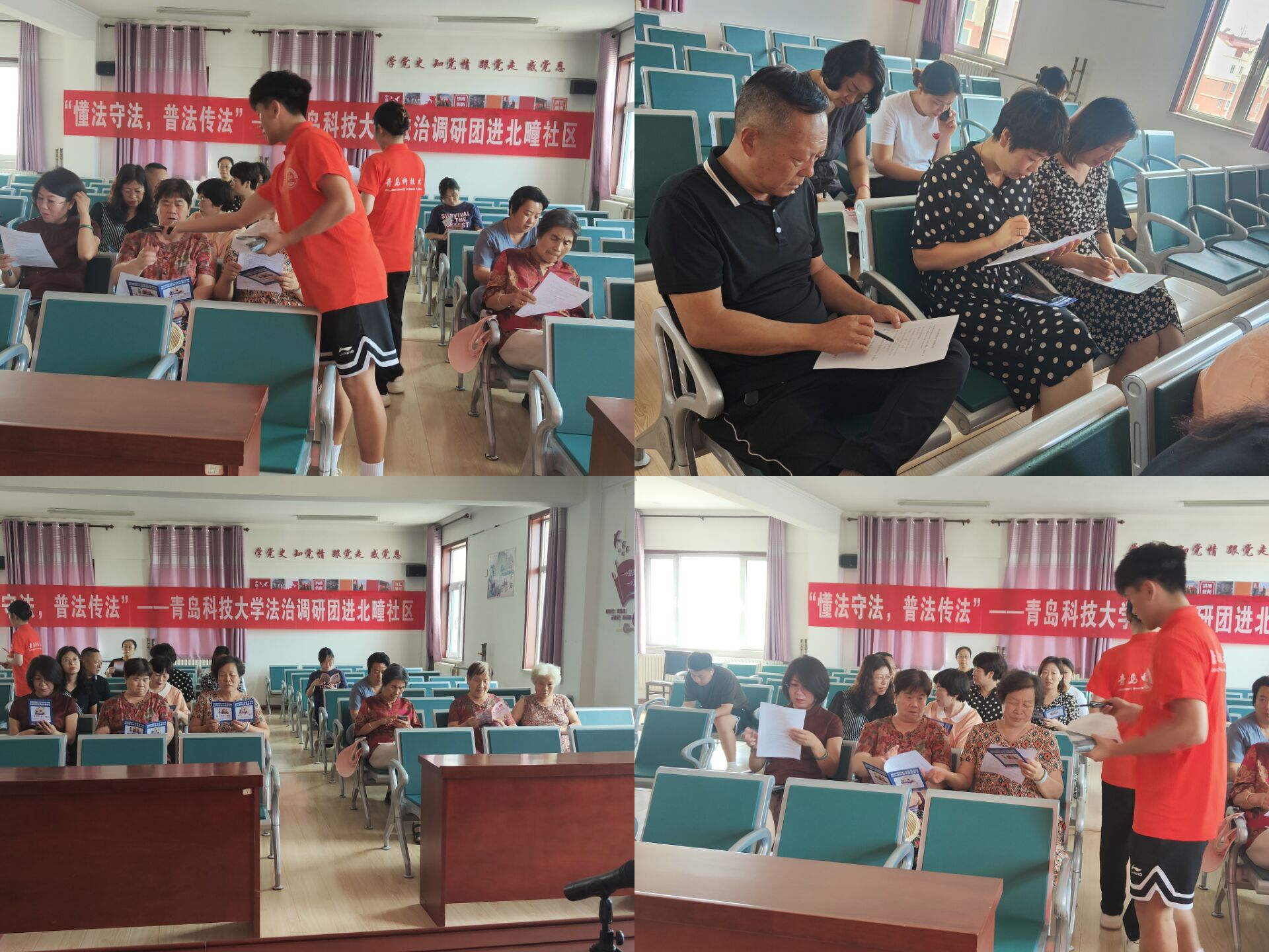 为加强法治宣传教育,增强居民法治意识,7月17日,“懂法守法,普法传法”beat365中文唯一官网法治入社区调研团队走进青岛市城阳街道北疃社区,为居民朋友们进行普法社会调研及法治理论普及宣讲。
