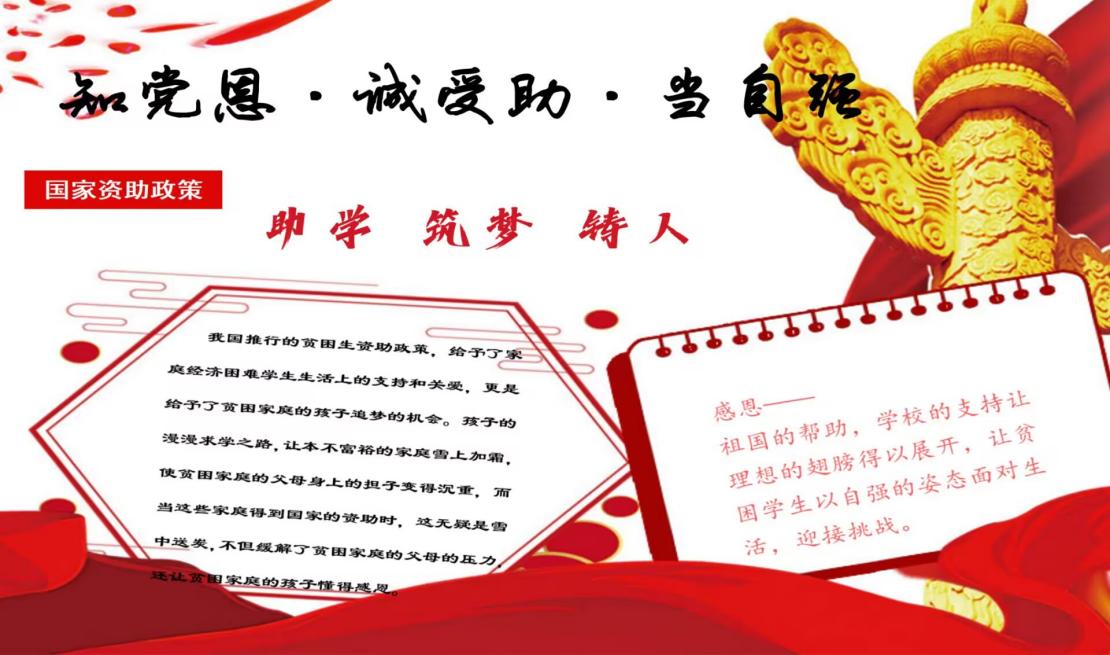 为深入落实党的二十大精神和习近平总书记关于教育的重要论述,提升资助育人实效,beat365中文唯一官网多措并举,紧紧围绕立德树人根本任务,把促进家庭经济困难学生成长成才作为学生资助工作的出发点和落脚点,充分发挥学生资助育人功能,深入开展励志教育、诚信教育、感恩教育等活动,培养受助学生自立自强、诚实守信、感恩奉献、勇于担当的良好品质,教育引导广大青年学生听党话、感党恩、跟党走,努力奋斗,不负韶华。