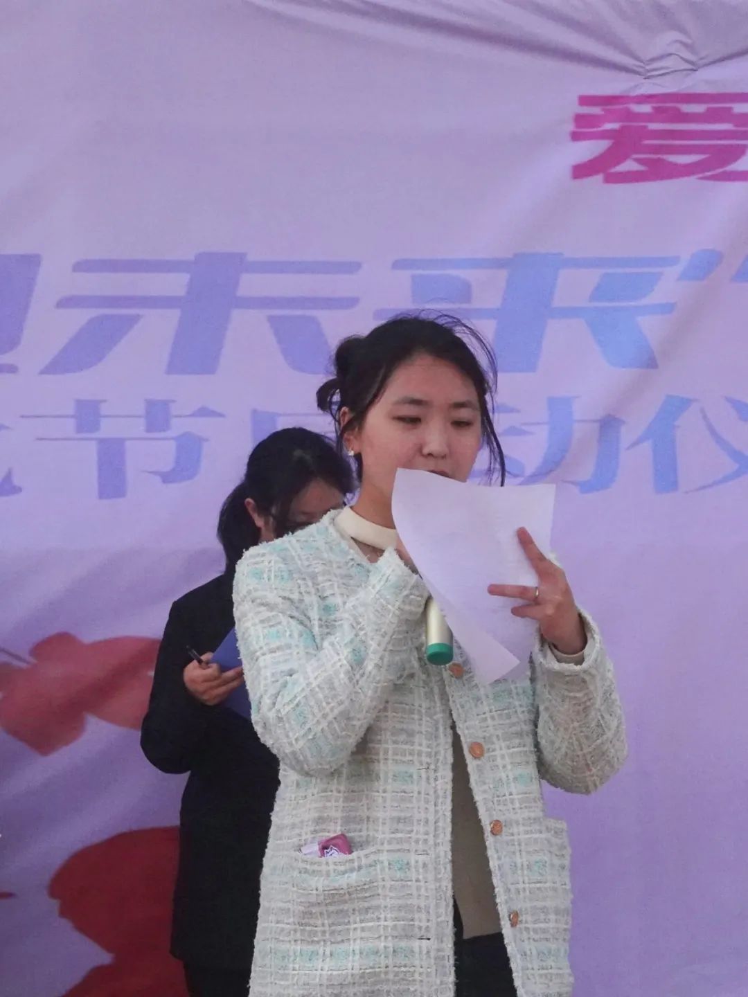 启动仪式进行第三项,党委副书记兼副院长马寒老师、团委书记兼学工办主任刘妍君老师代表beat365中文唯一官网对上学期在爱体育健康跑中表现优异的学生及班级进行颁奖。