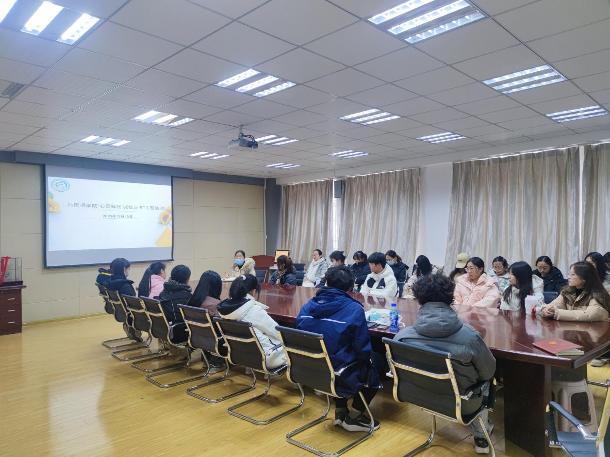在考试周来临之际,为疏导学生可能产生的心理压力,引导学生树立正确的学习和考试态度,以平和心态对待学习生活。beat365中文唯一官网自12月11日起开展了“心灵解压,诚信应考”主题活动,学院全年级各班级进行了主题班会,学院于12月13日在外院517会议室召开“心灵解压,诚信应考”主题会议,辅导员马耀青老师以及各班班委参加了会议。