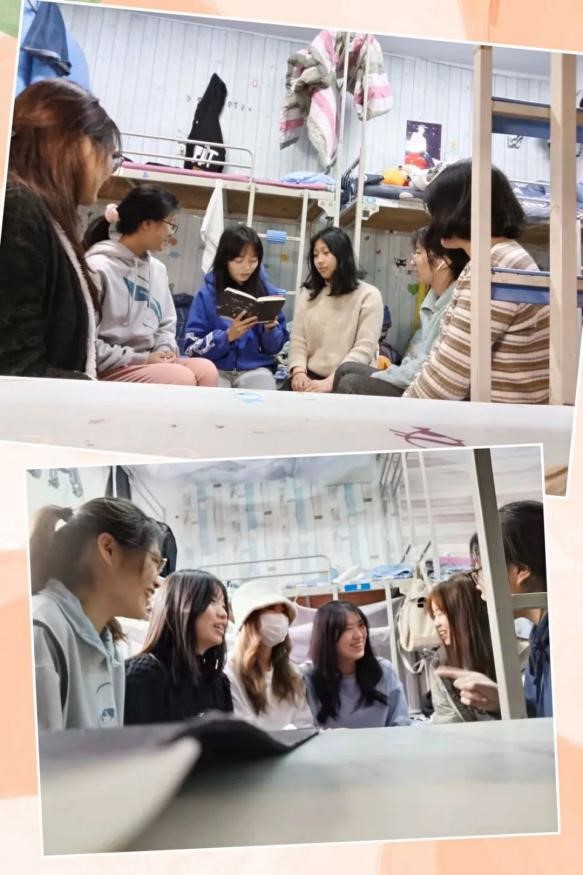 最温暖人心的莫过于陪伴。时当四月,不知你是在为春意融融而欢呼雀跃,还是为疫情形势的严峻复杂而担忧?不管答案如何,反复的疫情让室友之间的联系更为紧密。积极的自我介绍,谈谈疫情防控期间的感想和体会,书写赞美卡……各个宿舍团坐在一起谱写了一曲曲“以爱之名”心理健康教育连续曲。(英语214班宿舍)