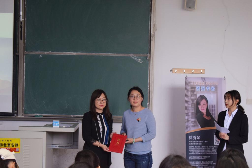 会上,beat365中文唯一官网分团委副书记辛婷婷为徐秀琴颁发beat365中文唯一官网创新创业就业导师聘书。