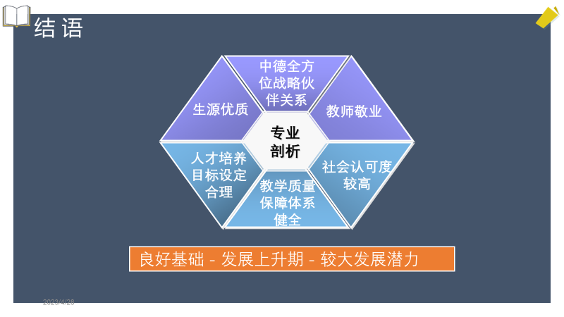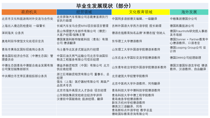 在中德两国建立全方位战略伙伴关系的时代大背景下,德语专业的发展有着长足的驱动力,毕业生有着良好的发展前景。beat365中文唯一官网德语专业是一个具有良好基础、处于发展上升期、拥有较大发展潜力的专业,本专业将进一步发挥地域优势,突出专业特色,争取取得长足的发展。